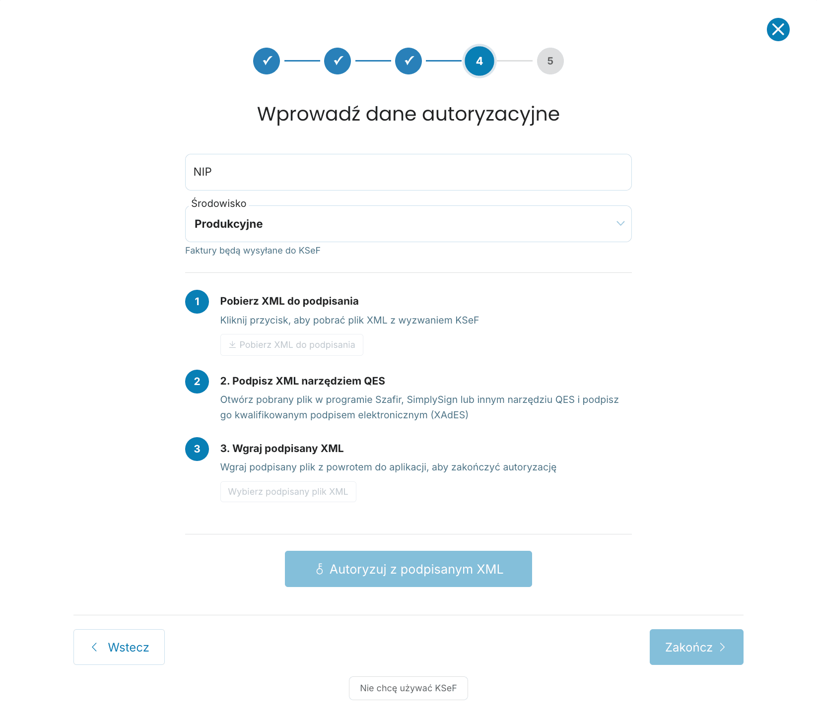 Jeśli posiadasz już podpis kwalifikowany, możesz go użyć do autoryzacji poprzez podpisanie pliku XML.