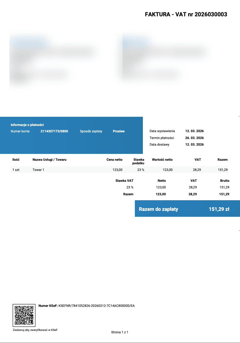 Kod QR – umożliwia weryfikację faktury w systemie KSeF